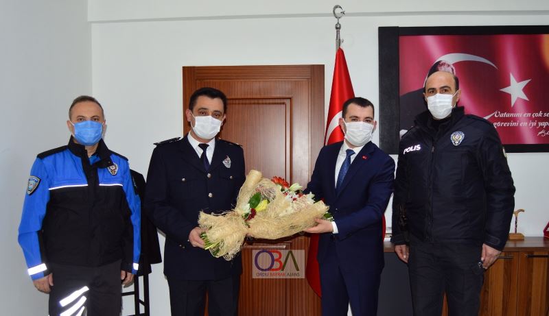 Ulubey Kaymakamı İsmail Güney, Türk Polis Teşkilatının Kuruluşunun 176. yıl dönümü nedeniyle Ulubey Kaymakamlığı ziyaret eden İlçe Emniyet Amiri Sezgin Aydın ve Emniyet personellerini makamında kabul etti.