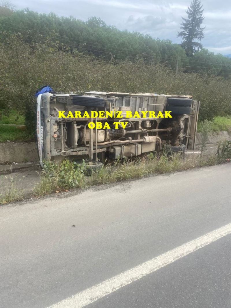 Ordu'da kepçe yüklü kamyon yan yattı
