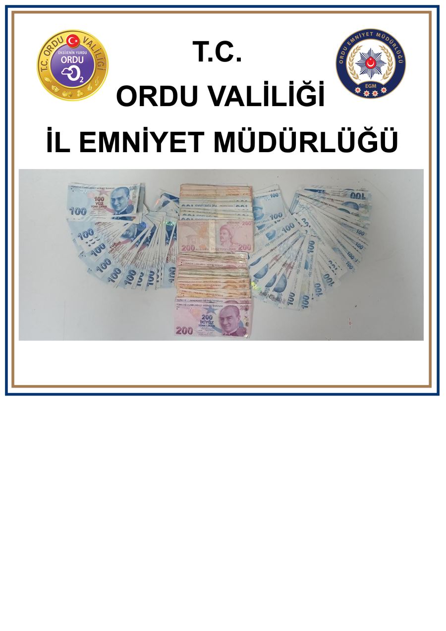 Ordu İl Emniyet Müdürlüğü Kaçakçılık ve Organize Suçlarla Mücadele Şubesi ekipleri, Perşembe ilçesinde 3 kişinin piyasaya sahte para sürdüğü ihbarı üzerine soruşturma başlattı. Çevredeki güvenlik kameralarını inceleyen ekipler, şüphelilerin içerisinde bulunduğu aracı takibe aldı. 100 kilometre boyunca takip yapan ekipler, Gölköy ilçesinde şüphelilerin aracını durdurdu. Yapılan aramada, 383 adet 100 TL'lik sahte banknot ile sahte paraların piyasaya sürülmesiyle elde edilen bir miktar para ele geçirildi. Nazım D (31), K.A. (35) ile M.Y. (41) gözaltına alındı.