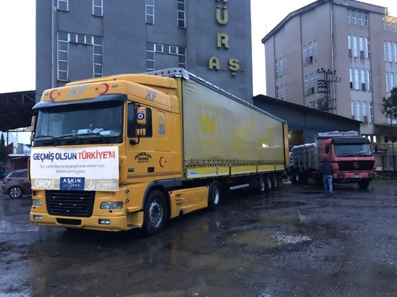 Yardım tırlarımız deprem bölgesine hareket etti. Seksen beş milyon bir olduk, yaralarımızı birlikte sarıyoruz.