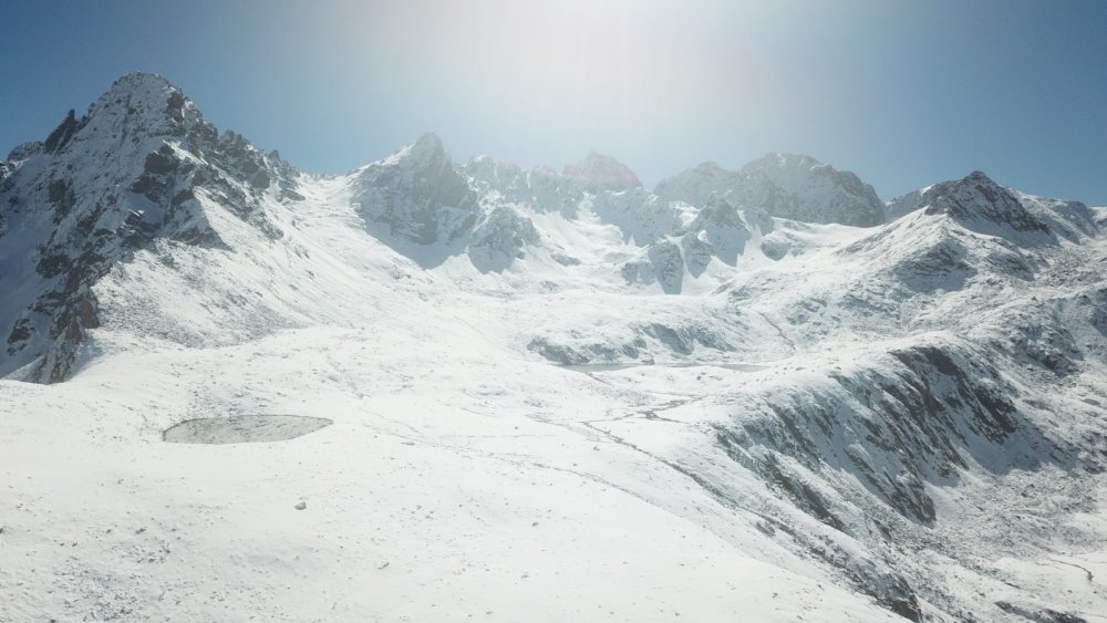 Kavrun yaylası Şahin Pansiyon sahibi Yalçın Şahin, 4 bin 200 metre rakıma dron göndererek bu güzel görülmeye değer göllerin buz tutmuş halini görüntüledi