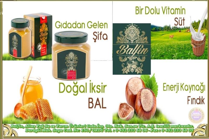 Orduda üretilen Vitamin ve enerji kaynağı olan Balfin, Altaş Yağ Su ve Tarım Ürünleri Gıda İnş. Oto. Nak. San.ve Tic. A.Ş. tescilli markasıdır.