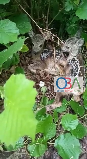 Ordu'nun Ulubey İlçesi Ohtamış Mahallesinde fındık bahçesinde bulunan iki karaca yavrusu doğaya bırakıldı.