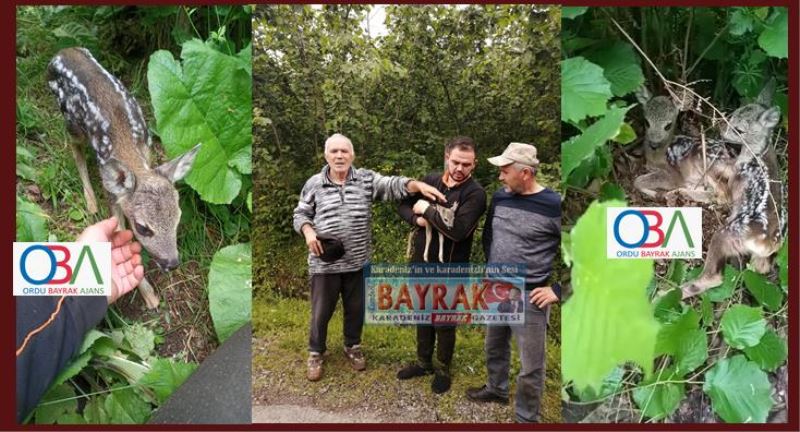 Ohtamış Mahallesinde ikamet eden Ertan Aktaş ve oğlu Ertuğrul Aktaş, fındık bahçesinde temizlik yapmak için gittiklerinde iki karaca yavrusu ile karşılaştı. Karacaların yaşam ortamını bozmamak için fındık bahçesinde temizlik yapmayı durdurdu.