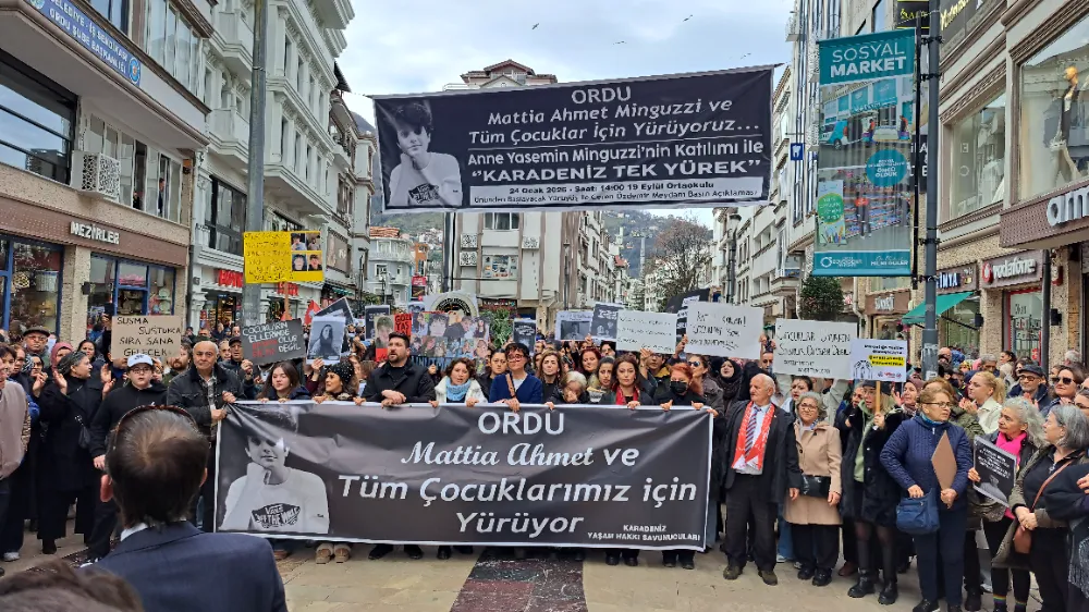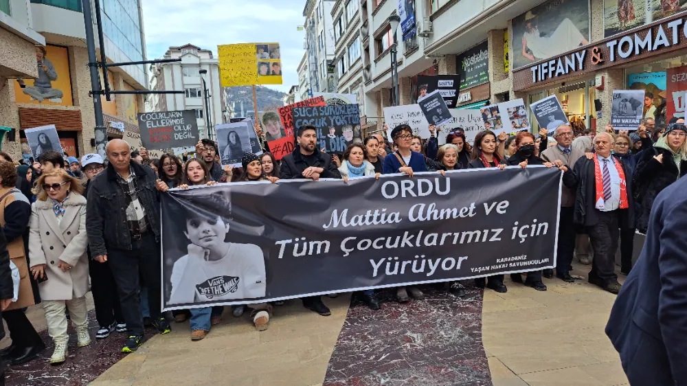 ORDU'da ‘İstanbul’un Kadıköy ilçesinde 24 Ocak 2025’te bıçaklı saldırıya uğrayan ve 9 Şubat’ta hayatını kaybeden Mattia Ahmet Minguzzi için Altınordu ilçesinde ‘Çocuklar için adalet’ yürüyüşü düzenlendi. Yürüyüşte anne Yasemin Minguzzi’nin yanı sıra Ordu Baro Başkanı Av.Birsen Uçar, Karadeniz yaşam hakkı savunucuları, Sendikalar, Ordu Çevre Derneği, sivil toplum kuruluşları, evlatlarını kaybeden anneler ve çok sayıda vatandaş katıldı.