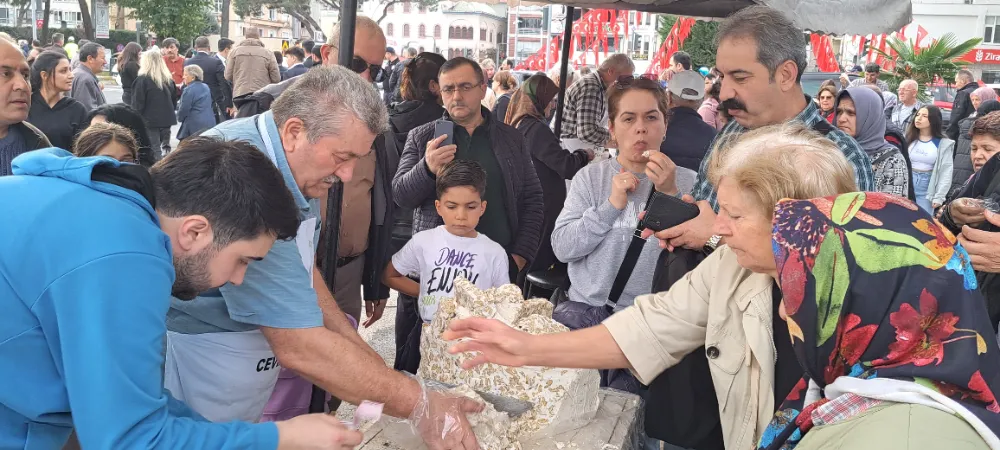 Yan yana dizilen ızgaralarda pişirilen 7 ton hamsi yaklaşık 10 bin kişiye karalahana çorbası, mısır ekmeği ve coğrafi işaretli cevizli helva eşliğinde ikram edildi.