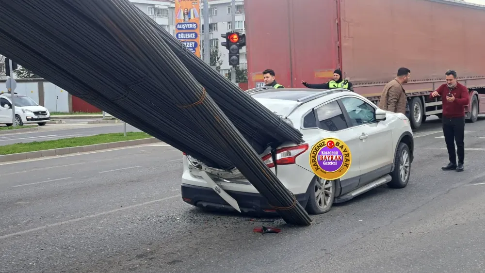 Ordu’da korkutan trafik kazası: Demirler otomobilin üzerine saplandı
