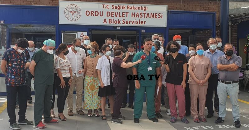 Ordu Devlet Hastanesinde yatmakta olan 90 yaşında COVİDLİ bir hastanın, yoğun bakımda vefatının ardından anestezi uzmanı doktor hasta yakını tarafından sözel şiddet ve ölümle tehdit edilmesi üzerine Hekim Birliği Sendikası Hukuk İşlerinden Sorumlu Başkan Yardımcısı Opr Dr. Cağlar Yıldırım yapılan basın açıklamasında şunları dile getirdi. Bu gün burada artık yeter demek için toplandık. Ordu Devlet Hastanesinde anestezi uzmanı doktora bir hasta yakını tarafından sözel şiddete uğramış ve ölümle tehdit edilmiştir