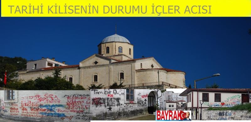 Taşbaşı Mahallesi’nde bulunan tarihi kilise, zamanında aydınlatılmaması ve güvenlik kamerası konulmaması nedeniyle korunamıyor. Gündüzleri bekçinin bulunduğu tarihi kilise geceleri ise adeta kaderine terk ediliyor. Böylesi bir kültürel değeri aydınlatmaya bile son bir ayda başlayan yetkililer, güvenlik kamerası sistemini ise hala kuramadılar. Bu nedenle özellikle akşam saatlerinde güvenlik kamerasının olmaması rahatlığıyla demir kapıdan içeri giren kişi veya kişiler kilesinin duvarlarını yazılarla çirkinleştirdiler.