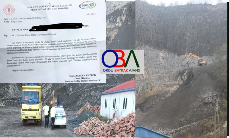 “Ordu ili Ulubey ilçemizde enteresan işler oluyor. İlçe merkezindeki taşocağının ruhsatı yok. Ruhsatı olmadığı halde Ulubey Belediyesi hem kendi kamyonları, hem de kiraladıkları iş makinalarıyla oradan taş çıkarıp satıyor. Bununla ilgili çok sayıda şikayet var. Belediye Meclisi'nde de bu konu gündeme gelmiş. Enerji ve Tabii Kaynaklar Bakanlığına 30 Aralık'ta bir şikayet başvurusu var. Buna 15 Ocak 2021'de cevap gelmiş. İlgili yazıda bakanlık 'bahse konu alanda herhangi bir maden ruhsatı ya da hammadde üretim izni yoktur' diye açıkça cevap vermiş ve Ordu Valiliğini göreve davet etmiştir. Peki ruhsatı olmayan alandan belediye hangi gerekçeyle taş çıkarıyor ve satıyor? Bunların kaydı nasıl tutuluyor? Yani kime ne kadar taş sattınız ve karşılığında parayı hangi şekilde nereye aldınız? Bu konular valiliğe ve Kaymakamlığa şikayet edildiğinde gerekli işlemler yapılmış. Burada gelmiş emniyet tespit yapmış. Buradaki sorun gibi Güvenyurt'ta da aynı sorun var. Dün de Güvenyurt'ta bu şekilde kaçak bir taş ocağı yine Ulubey Belediyesi tarafından enteresan bir şekilde işletiliyor. Orada da bu olay Jandarma tarafından tespit edilmiş. Ordu valiliğinin belediyeye bu konu ile ilgili tespit yapıp ceza kestiğine dair duyumlarımız var. Bunlar doğru mudur? Böyle bir cezai işlem veya tespit yapılmışsa diğer adli süreçler başlamış mıdır? Ulubey Kaymakamlığının gerekli işlemleri yapması nedeniyle belediye başkanı tarafından kaymakamın da hedef alındığı bilgisi var.