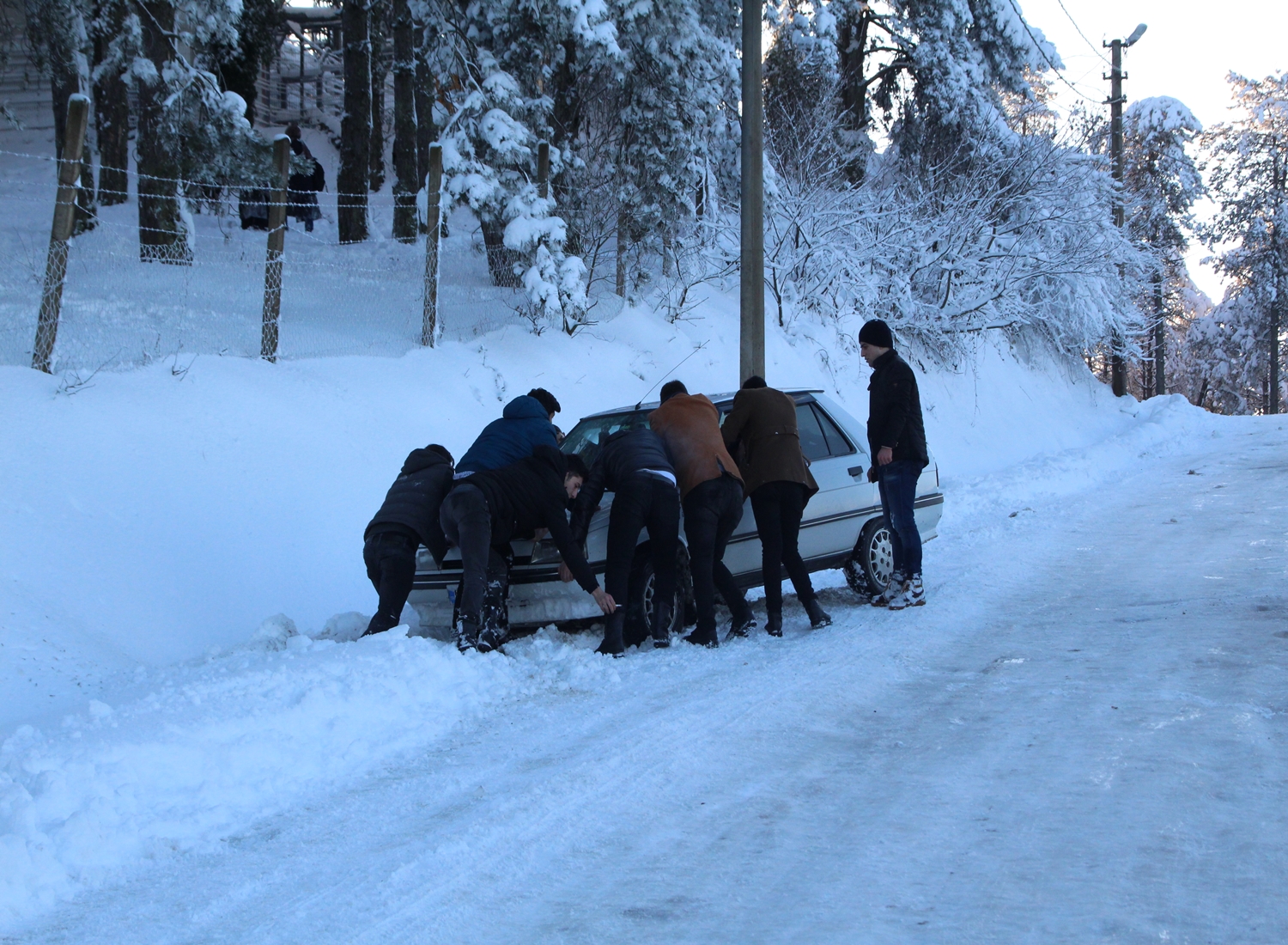 Ordu’da yoğun kar yağışı nedeniyle yolda kalan aracı patpat çekerek kurtardı