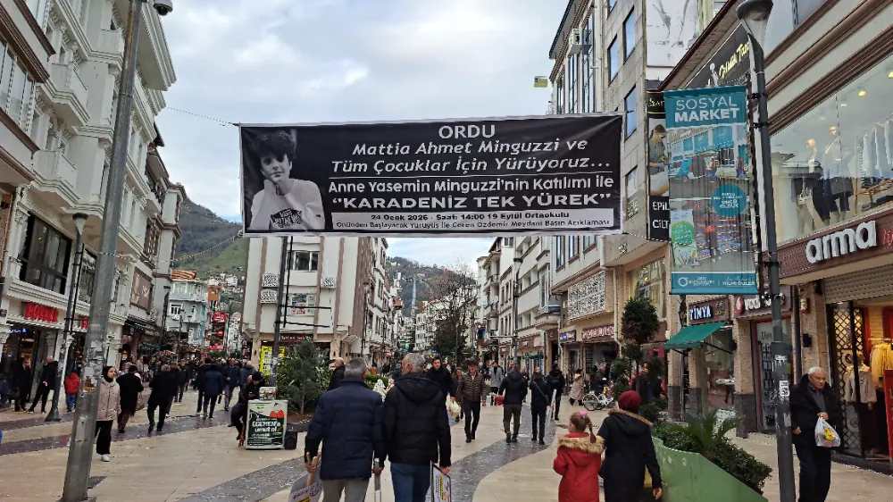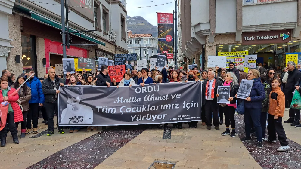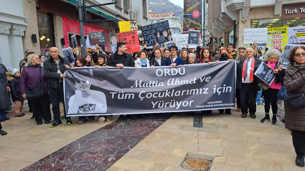 ORDU'da ‘İstanbul’un Kadıköy ilçesinde 24 Ocak 2025’te bıçaklı saldırıya uğrayan ve 9 Şubat’ta hayatını kaybeden Mattia Ahmet Minguzzi için Altınordu ilçesinde ‘Çocuklar için adalet’ yürüyüşü düzenlendi. Yürüyüşte anne Yasemin Minguzzi’nin yanı sıra Ordu Baro Başkanı Av.Birsen Uçar, Karadeniz yaşam hakkı savunucuları, Sendikalar, Ordu Çevre Derneği, sivil toplum kuruluşları, evlatlarını kaybeden anneler ve çok sayıda vatandaş katıldı.