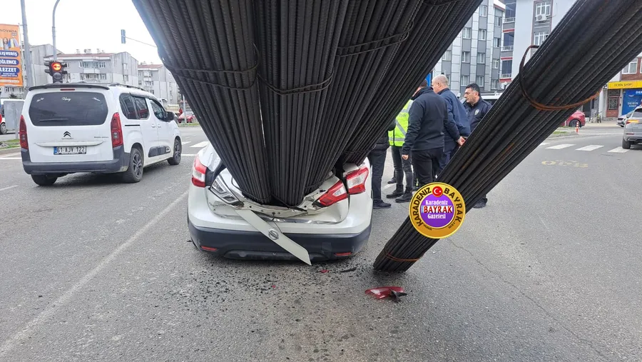 Ordu’da korkutan trafik kazası: Demirler otomobilin üzerine saplandı