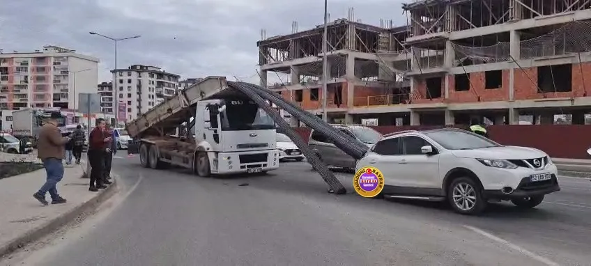 A.H.A.’nın kullandığı 55 GM 378 plakalı, üzerinde demir yüklü kamyon kırmızı ışığa yaklaştığı sırada, kasasında bulunan demirler öne doğru kayarak A.Y.’ye ait ve içinde üç kişinin bulunduğu 52 ABB 650 plakalı otomobilin üzerine saplandı.